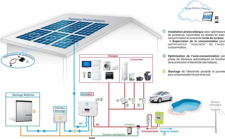l’autoconsommation totale sans réinjection dans le réseau ou l'autoconsommation partielle avec revente ou avec stockage.