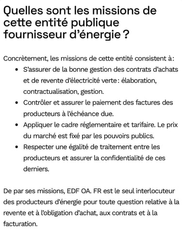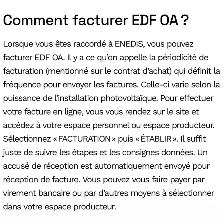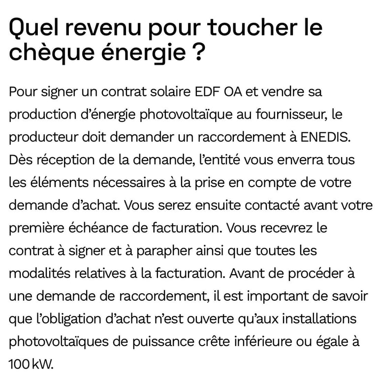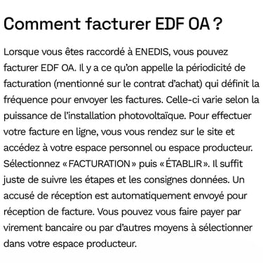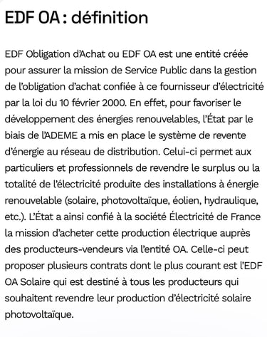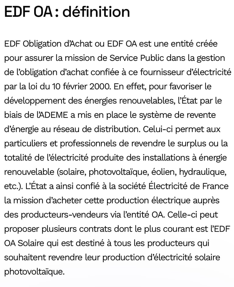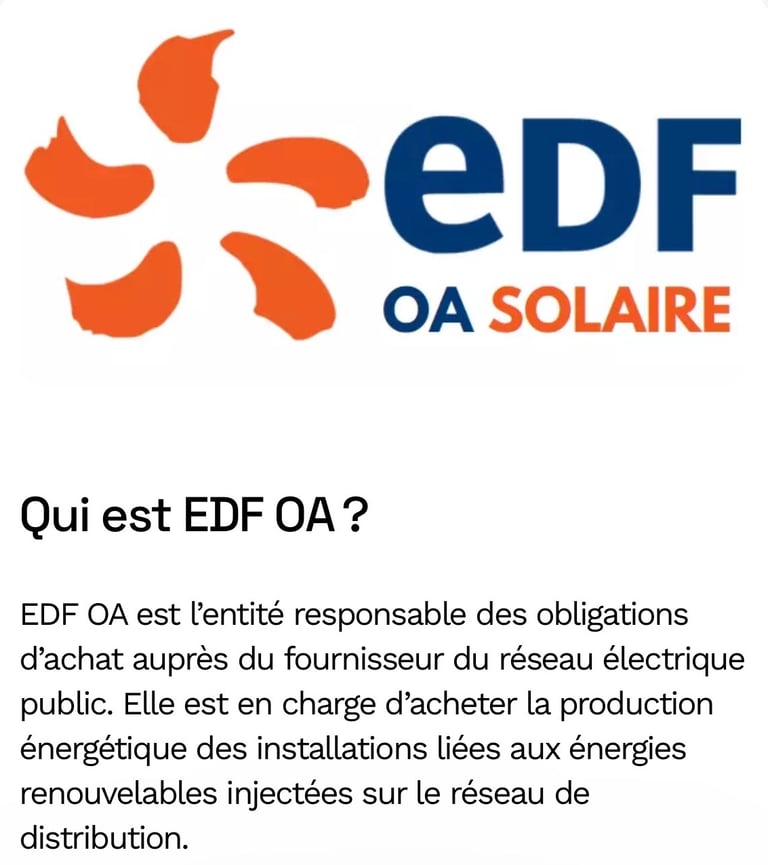 Tarif Rachat électricité Photovoltaïque avec EDF OA