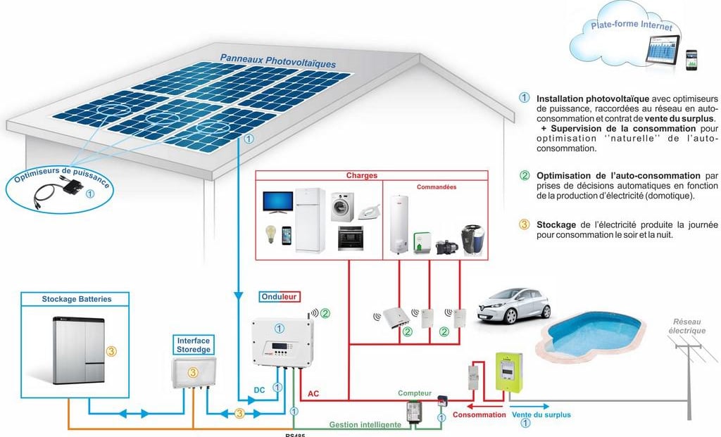 l’autoconsommation totale sans réinjection dans le réseau ou l'autoconsommation partielle avec revente ou avec stockage.
